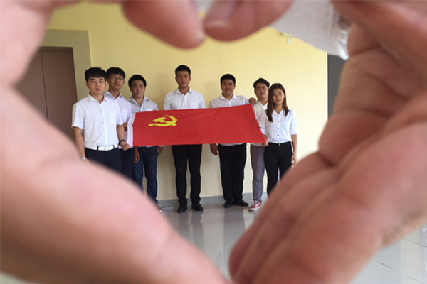 为迎接党的十九大胜利召开,汽车系学生支部于2017年10月18日组织党员、入党积极分子开展了“喜迎十九大,坚定跟党走”——我与党旗合影的主题活动。