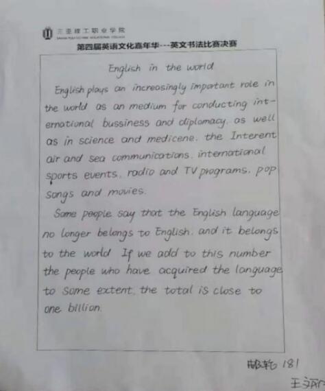 2018年11月21日,由我院公共基础教学部举办的第四届“英语文化嘉年华”之英文书法大赛圆满地落下了帷幕。