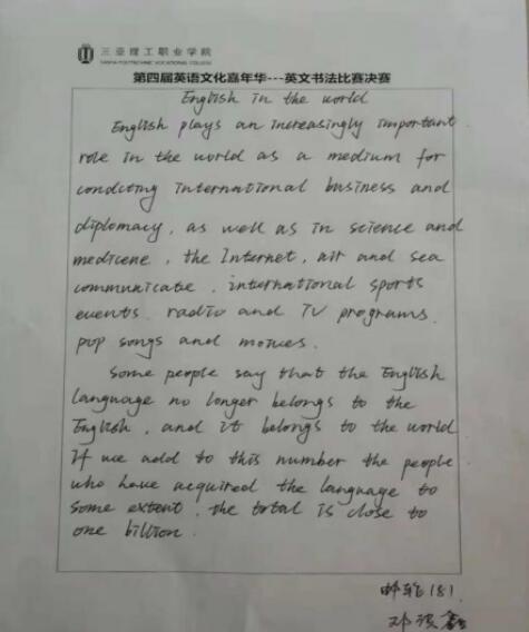 此次英文书法大赛作为英语文化嘉年华系列主题活动之一,旨在丰富学生们的校园生活和提高学生们的英文书写能力,也为他们提供了一个展示自己的舞台!