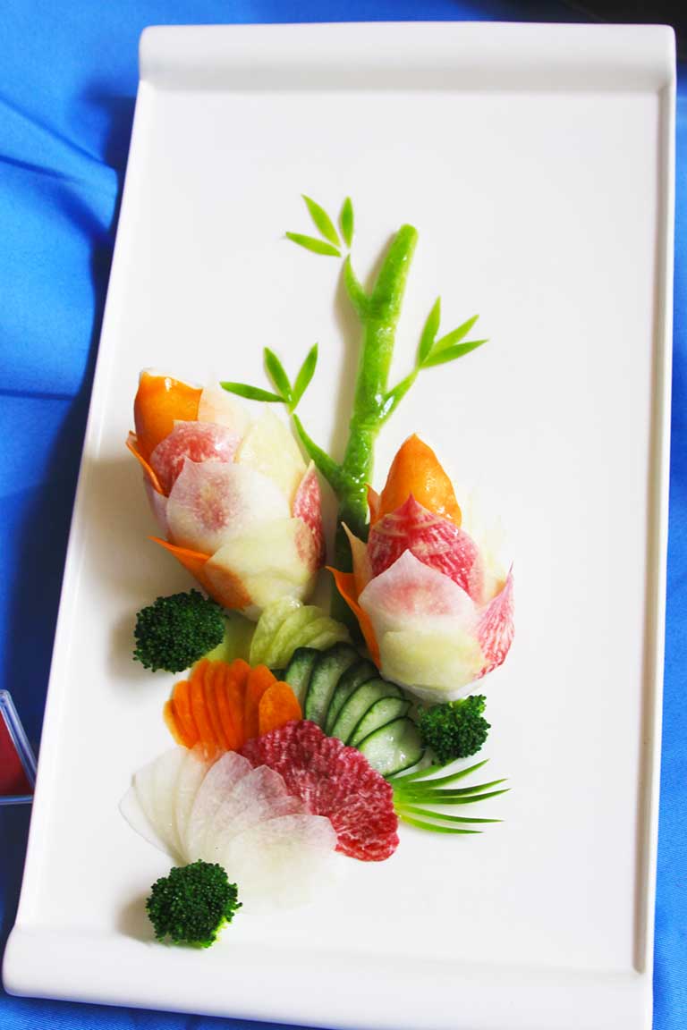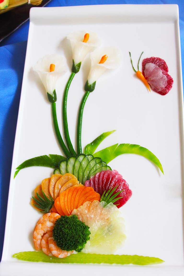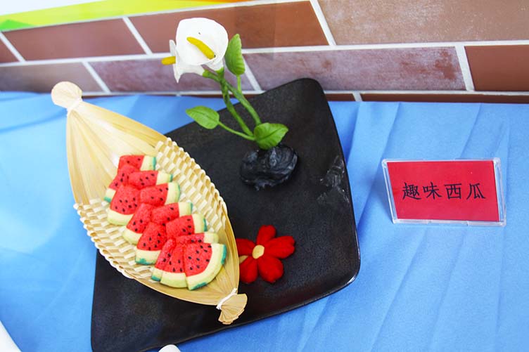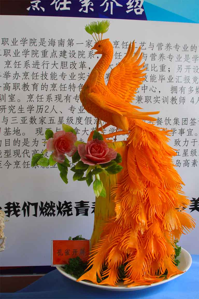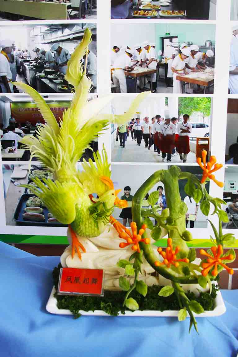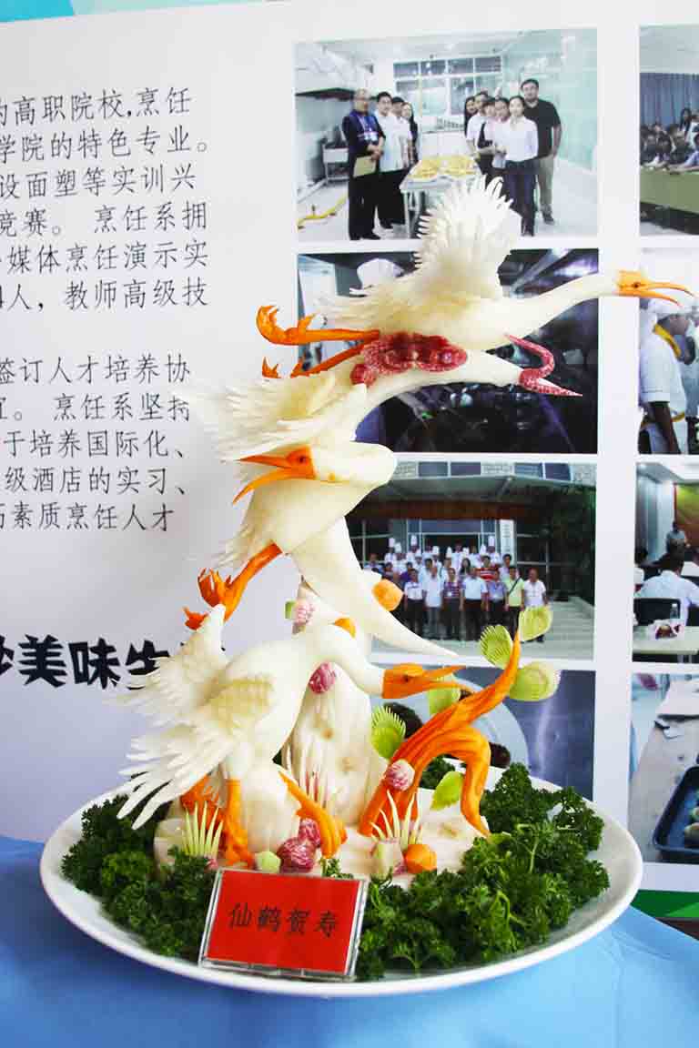 此次展出的所有作品均为学生作品,每一份作品都蕴含着学生深厚的功底,展现出高超的烹调技艺及精湛的刀工功法。冷拼工艺和食品雕刻无论从技术上,还是种类、品种或原材料的使用上,也都得到了很大创新和突破。