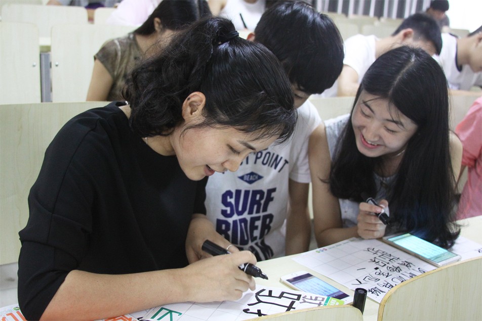 周芊宏老师给学生示范艺术字