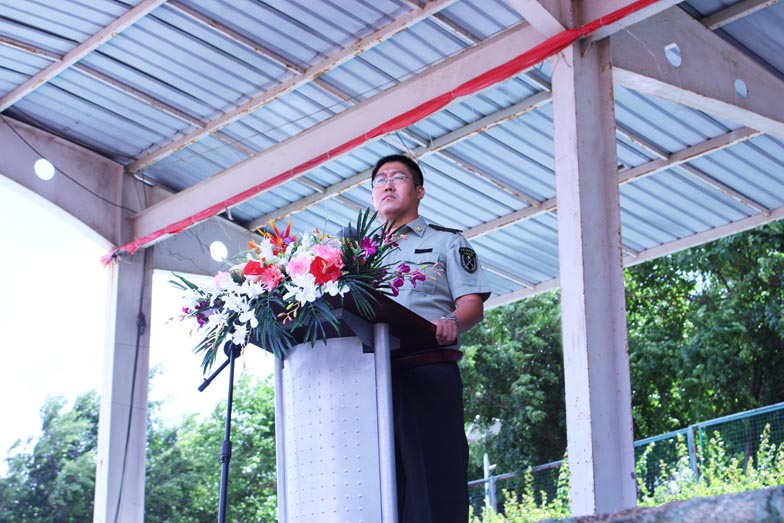 新生代表桂天翔在发言中说,为期11天的军训,同学们认真对待每一次训练,时刻以一名军人的标准严格要求自己,努力成为一名合格的准军人。教官代表赵晨舒汇报了以身作则、科学施训的过程,没有辜负学校的希望和学生的信任,圆满完成此次军训任务。辅导员代表王新龙讲话中肯定了参训同学军训以来所作出的成绩,表扬了同学们以饱满的热情和责任感,刻苦训练,严格要求,严明守纪,实现了军训全过程安全有序。学院医院张院长在会上对所有新生送上温馨祝福,并传授防暑养生小常识,获得了在场师生的一致好评。