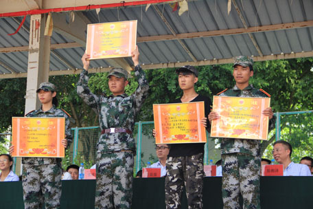 院长助理欧阳莉教授在会上宣布表彰决定,对在军训中成绩突出的集体及个人进行表彰,学院领导为学生代表颁发了荣誉证书。