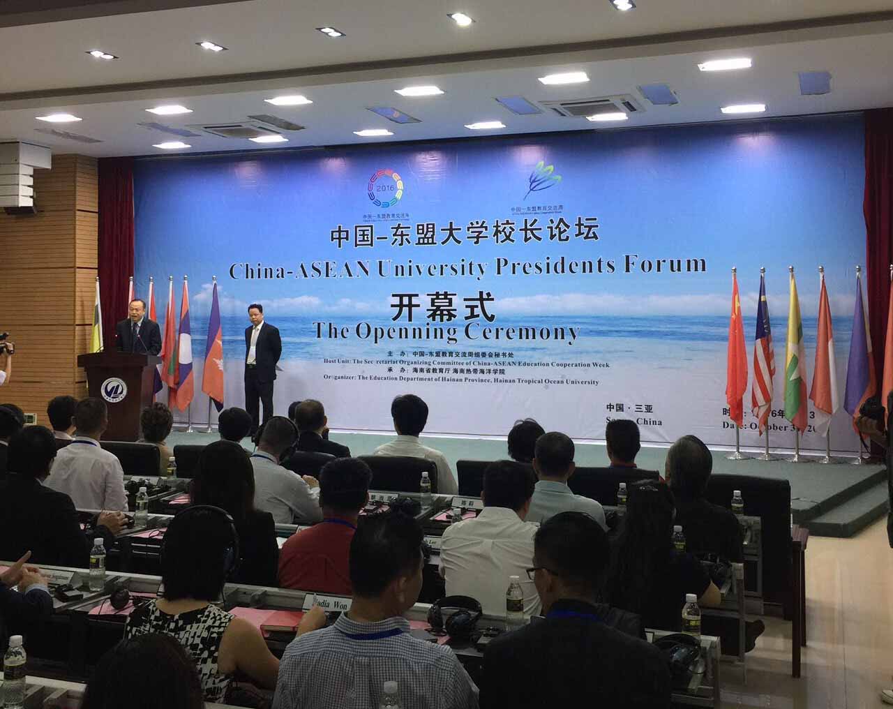 2016年11月1日-2日,由中国-东盟教育交流周组委会主办,海南省教育厅承办的中国-东盟大学校长论坛在三亚开幕。
