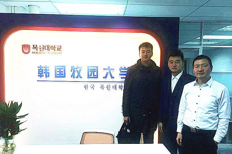 13日,王新龙老师参观韩国牧园大学驻中国代表处,代表处李社长与陈室长接见王老师。双方就我院学生专升本、硕、博,教师进修。两校互推交换生以及共同举办中韩国际班展开了探讨。
