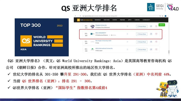 合作方马来西亚世纪大学是一所拥有45年办学历史的综合性私立大学,是马来西亚高教部评选的六星级杰出大学(MYQUEST 2016 /2017)之一。学校在校师生达到22000多人,拥有5000多名来自于30多个不同国家和地区的国际留学生在校学习。